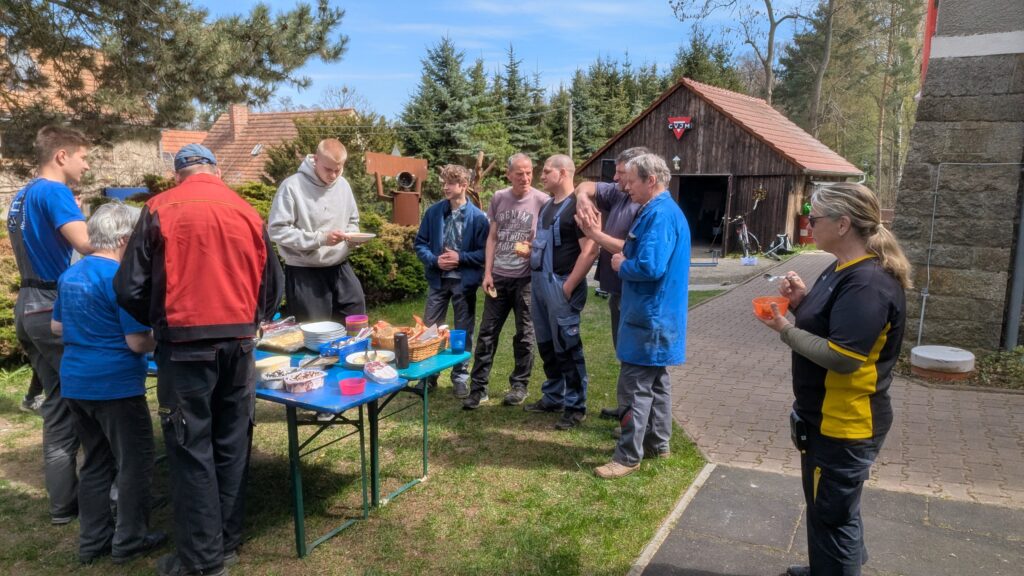 Natürlich kam bei all dem Engagement auch das Miteinander nicht zu kurz. Eine wohlverdiente Pause zwischendurch bot Gelegenheit zum Durchatmen, Austauschen und Genießen. Für das leibliche Wohl war bestens gesorgt: Ein gemeinsames Mittagessen stärkte alle Beteiligten. Nach dem Mittag gab es noch eine Auswahl an köstlichem Kuchen und Eis.