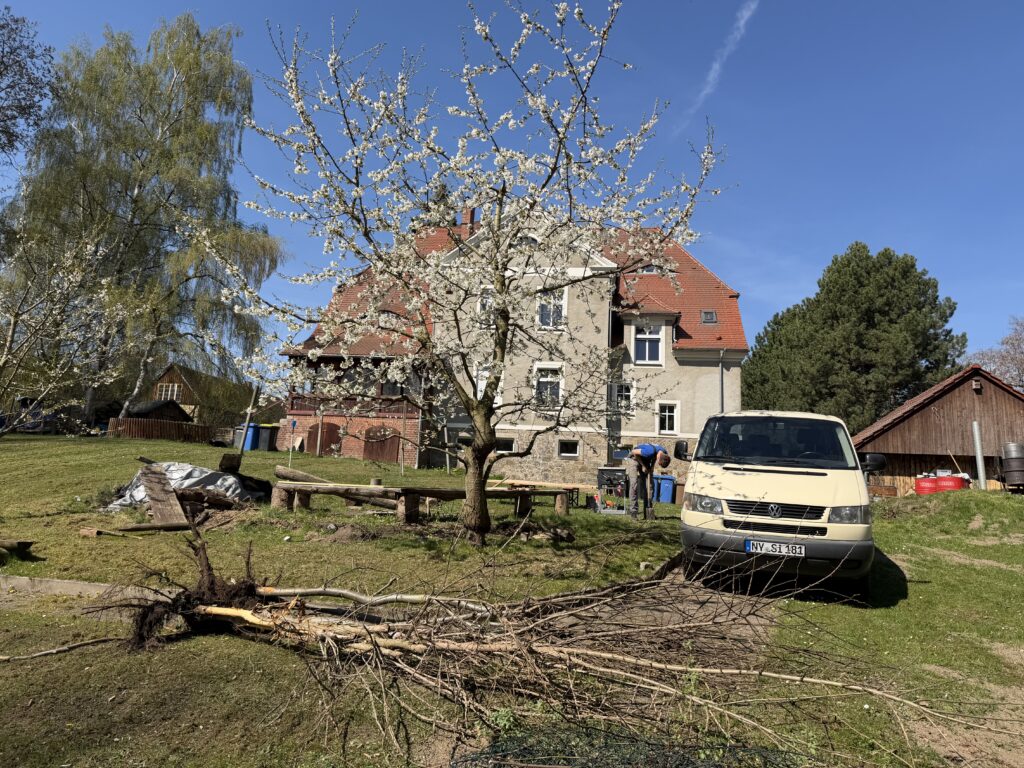 Auf dem gesamten Grundstück herrschte reges Treiben. Es wurde geschnitten, geräumt, geschleppt und verschönert. Besonders eindrucksvoll war dabei der Einsatz eines Traktors. Er war ein echtes Highlight und unterstützte uns tatkräftig beim Entfernen einiger Sträucher – ein Anblick, der nicht nur effektiv, sondern auch faszinierend war.